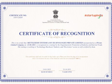 We are proud to announce that Mettlesemi Systems and Technologies Pvt. Ltd. has been officially recognized as a startup by the Department for Promotion of Industry and Internal Trade (DPIIT), Government of India.
